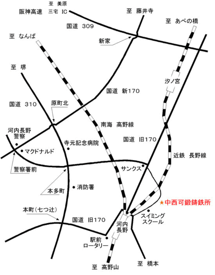 阪神高速 松原線 三宅IC出て、国道309号直進。